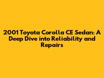 2001 Toyota Corolla CE Sedan: Reliability & Repairs