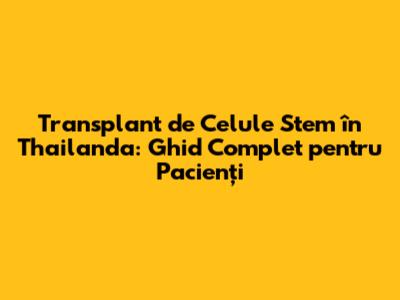 Transplantul de celule stem în Thailanda poate fi o opțiune salvatoare de viață pentru multe afecțiuni medicale. Alegerea clinicii potrivite, pregătirea atentă și îngrijirea post-transplant sunt esențiale pentru succesul tratamentului. Sper că acest ghid v-a oferit informațiile necesare pentru a înțelege acest proces complex. Dacă aveți întrebări, nu ezitați să consultați un medic specialist. Sănătate multă!