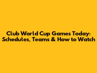Club World Cup Games Today: Schedules, Teams & How To Watch
