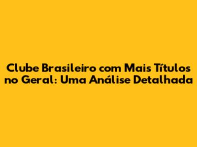Clube Brasileiro Com Mais Títulos: Uma Análise Completa