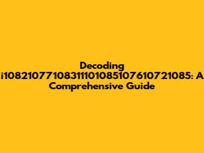 Decoding I10821077108311101085107610721085: A Comprehensive Guide