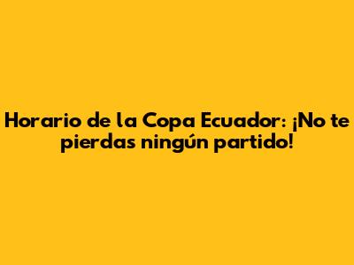 Horario De La Copa Ecuador: ¡No Te Pierdas Ningún Partido!