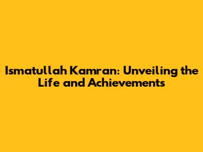 Ismatullah Kamran: A Comprehensive Biography