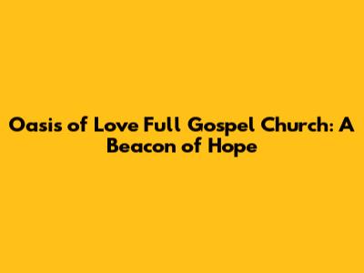 Oasis Of Love Full Gospel Church: A Beacon Of Hope