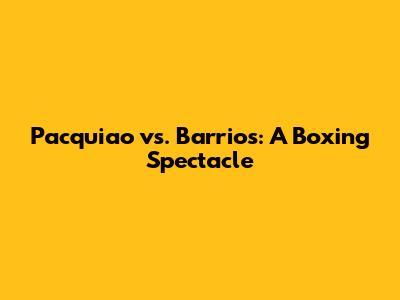 Pacquiao's Comeback: A Showdown With Barrios