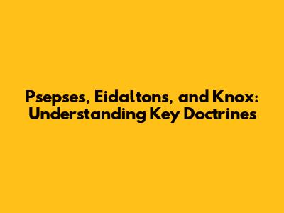 Psepses, Eidaltons, And Knox: Understanding Key Doctrines