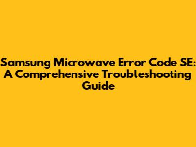 Samsung Microwave Error SE: Troubleshooting Guide