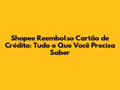 Shopee Reembolso Cartão De Crédito: Guia Completo E Sem Complicações